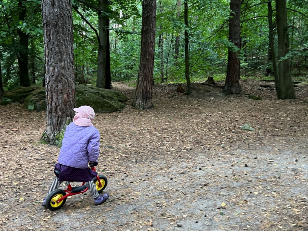 Wir haben für die Laufstrecken wieder das Laufrad dabei – und das funktioniert wunderbar. Der Weg ist gut befahrbar und so kommt nie Langeweile auf. Die jeweiligen Stecken von Station zu Station sind auch diesbezüglich gut bemessen. Alles intensiv auszukosten, braucht Zeit: Wir sind am Ende rund 3 Stunden auf dem Rundweg unterwegs – und haben dabei jede Station wirklich ausgekostet.