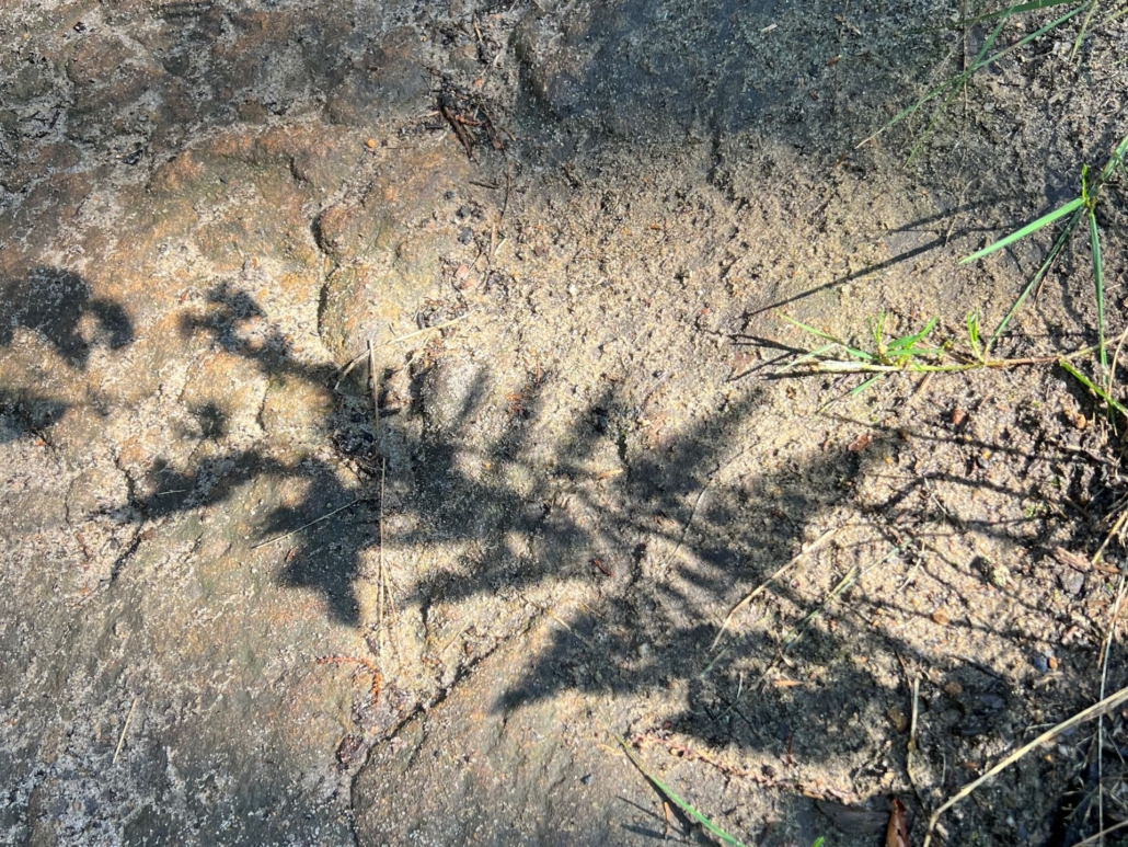 Wir haben ein Laufrad dabei, was wirklich gut funktioniert, auch wenn wir Eltern es streckenweise über Wuzeln tragen müssen. Am Ende, am steinigen Teil der Wanderung, stellen wir das es am Fuße des Felsens ab, wo wir es am Ende für den Rückweg wieder mitnehmen.
