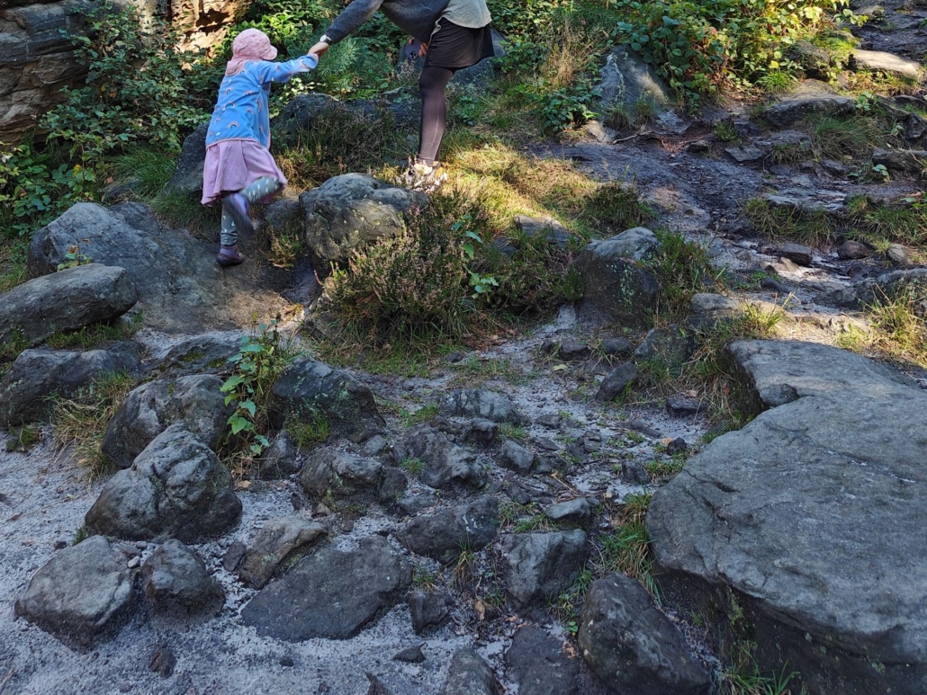 Unbedingt Snacks für die Pause auf den Steinfelsen einpacken und Zeit für Entdeckungsschlenker im Wald lassen – dann wird der Ausflug garantiert ein Erlebnis für die ganze Familie.