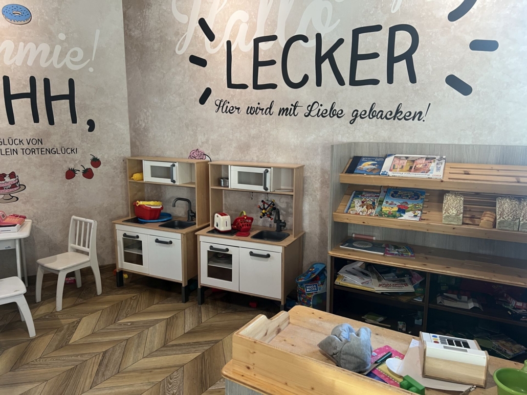 Während Erwachsene es sich in gemütlichen Lesesesseln oder an kleinen Tischen in geschützten Nischen bequem machen, wartet auf Kinder ein echtes Highlight: eine große Spiel- und Kochküche mit viel Platz. Hier kann ausprobiert, sortiert und gespielt werden, ohne dass ständig jemand ermahnt werden muss. Für Eltern bedeutet das: Kaffee trinken, lesen, reden – und das Kind trotzdem in der Nähe wissen.