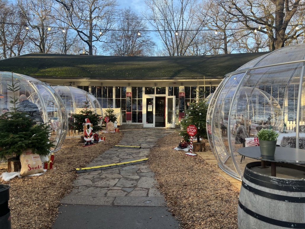 Im Winter kommt ein besonderes Extra dazu: das beleuchtete und beheizte Iglu, das den Restaurantbesuch plötzlich zum Erlebnis macht. Ein Ort, der sowohl spontane Parkbesuche als auch geplante Familientreffen (mindestens 5 Personen und maximal 12) wunderbar gemütlich macht. Man kann das Glashaus gut mit einem Besuch auf dem wunderbaren Spielplatz Rennbahnweg verbinden.