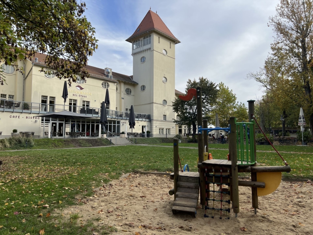 Hier können Eltern wirklich durchatmen. Die Rennbahn-Gastronomie bietet drinnen einen großen geräumigen Spielbereich und draußen einen weitläufigen Spielplatz mit Sandkasten. Kinder dürfen sich austoben, während Erwachsene entspannt sitzen bleiben können. Ideal für längere Treffen, Familienfeiern oder Tage, an denen Bewegung einfach dazugehört. Die Umgebung ist grün, ruhig und großzügig – perfekt für Kinder, die nicht gern stillsitzen.