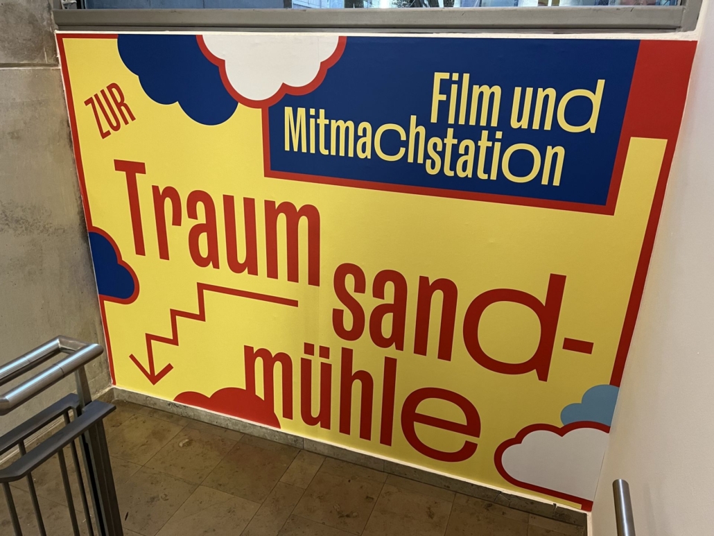 Schon beim Betreten der Ausstellung leuchten die Augen der Kinder – und ganz ehrlich, auch unsere. Der Sandmann sitzt gemütlich auf einer Bank im Eingangsbereich, bereit für das erste Familienfoto. Klick! Ein perfekter Auftakt in eine bunte, interaktive Ausstellung, die Kindheitserinnerungen weckt und gleichzeitig jede Menge Mitmachstationen für kleine Entdecker:innen bietet.