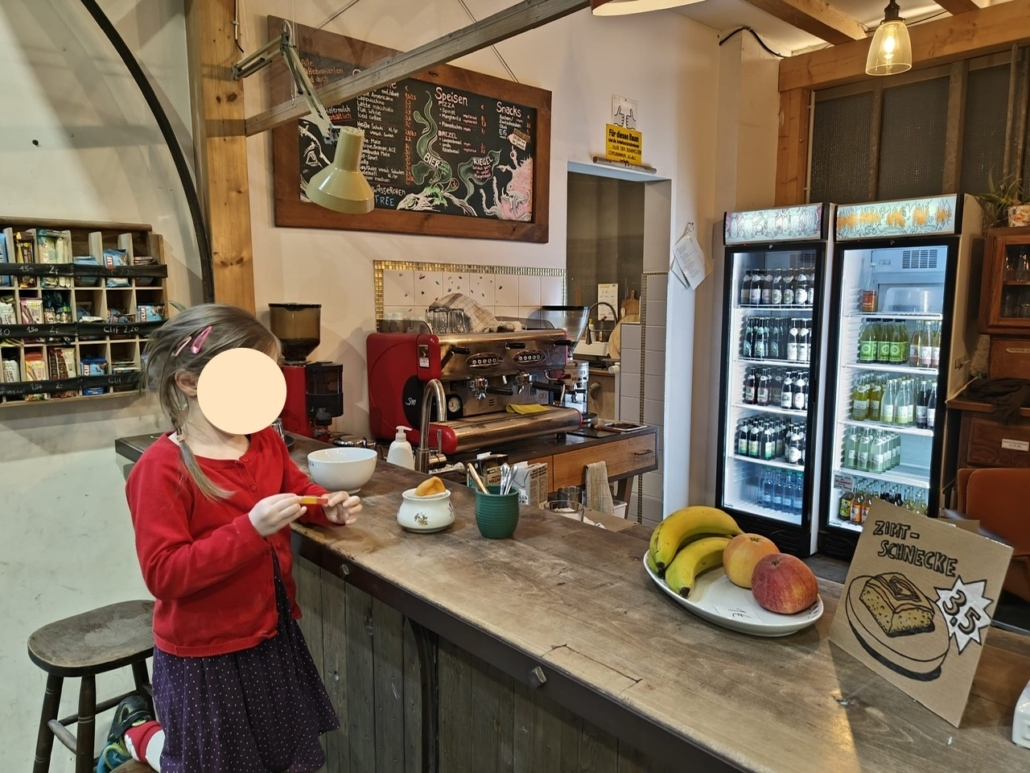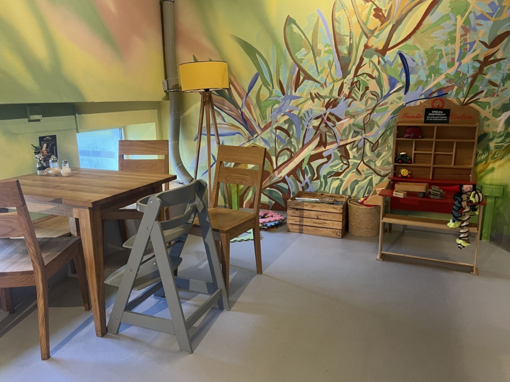 Das Biomare in der Südvorstadt ist noch so ein guter Ort für Eltern, die mittags essen möchten, ohne ständig aufspringen zu müssen. Die Spielecke in der ersten Etage ist umgeben von Tischen und Sitzgelegenheiten. Das Essen ist frisch, unkompliziert und schnell verfügbar – perfekt für eine Mittagspause mit Kind. Und man kann gleich noch schnell im Bio-Laden einkaufen gehen. Ein Ort, der Kinderfreundlichkeit zeigt. Vor dem Bioladen stehen außerdem zwei Tretfahrzeuge bereit für die nächste kleine Ausfahrt.