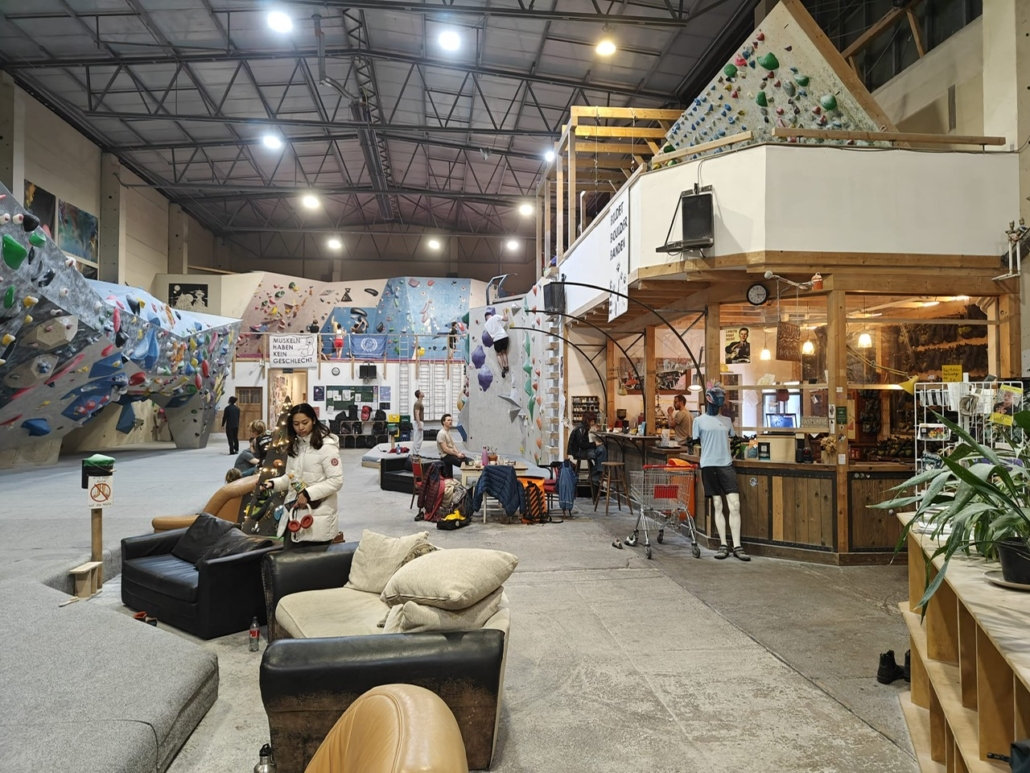 Nach dem Klettern können Familien im Kosmos-Imbiss Pizza, XXL-Käsebrezel, Getränke oder Obst kaufen und einen Kaffee genießen. Ein Tipp: Das Personal macht den Kids gerne auch eine geschäumte (Hafer/Kuh-)Milch – immer ein kleines Highlight. Das alles kann man dann auf einer gemütlichen Couch genießen und dabei den Großen beim Bouldern zuschauen und staunen. Ein Ort, an dem Kinder sich auspowern dürfen und Eltern ganz entspannt dabei sein können.