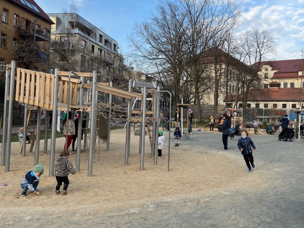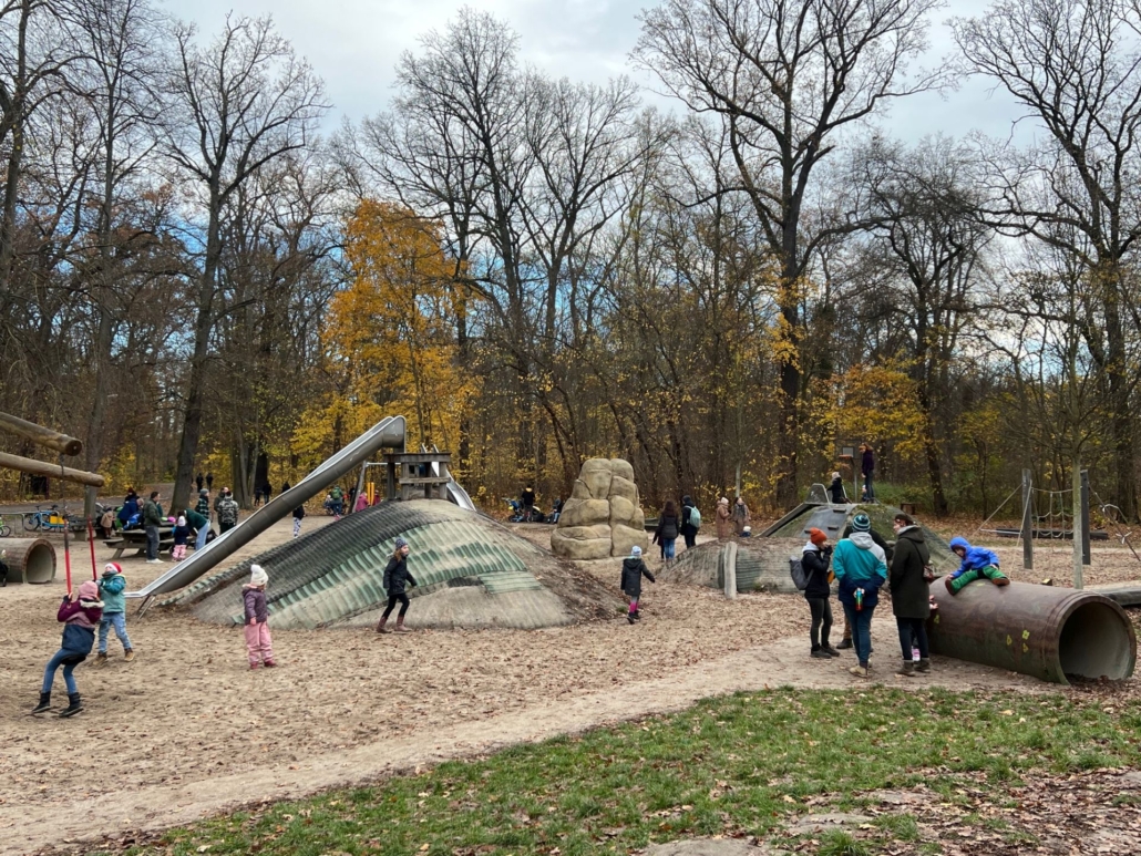 Der Spielplatz Dammstraße (nähe Schleußiger Weg) gegenüber dem Freisitz der Gaststätte Drei Kastanien bietet hohe Kletterelemente (Achtung, erst ab ca. 5 Jahren geeignet), ein Karussell und sogar einen kleinen Fitnessparcours für Kinder mitten im Grünen. Nach dem Spielen geht es zum Essen in die Gaststätte – unsere Kinder haben den Camembert mit Preiselbeeren und Toast hier ausdrücklich empfohlen! Ein entspannter Ort im Grünen für Familien.
