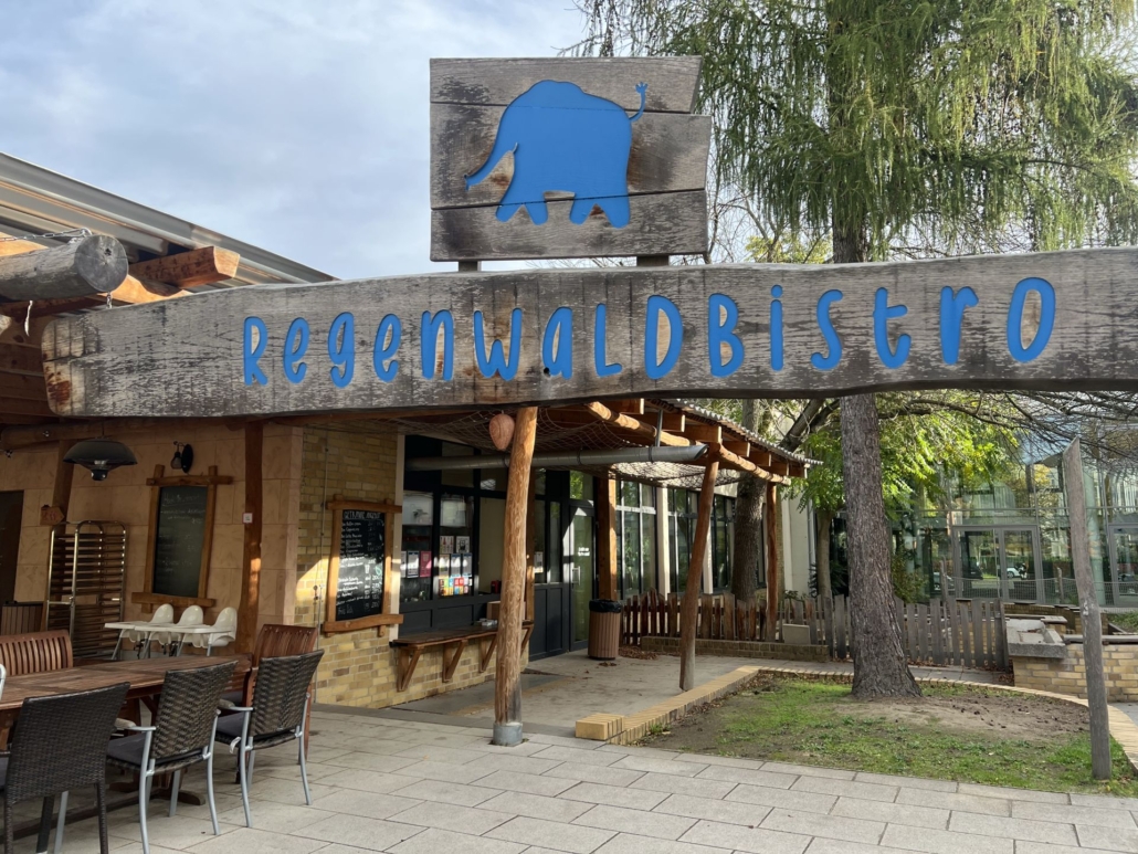 Gemeinsam können Eltern und Kinder entspannt auf der Terrasse des RegenwaldBistro essen. Das Angebot ist familienfreundlich: Pommes, Wraps, Waffeln, Eis, Milchreis, Salate und Getränke. Wichtig zu wissen: Öffnungszeiten beachten – das Gelände ist nicht dauerhaft zugänglich, an normalen Werktagen ist es der Spielplatz einer Kita. In der Nachbarstraße wartet außerdem eine Spielstraße mit XXL-Mensch-ärgere-dich-nicht, ein Spielspaß für die ganze Familie.