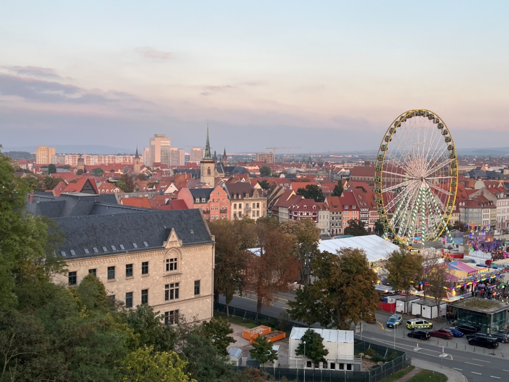 Und natürlich darf ein erneuter Abstecher auf den Domplatz nicht fehlen – hier ist gerade Oktoberfest: Die Kinder drehen begeistert Runden auf dem Karussell und angeln zum Abschluss Enten auf der Kirmes. Wir lassen den Abend beim Abendessen beim Restaurant India am Domplatz ausklingen und werden überrascht. Kurz nachdem wir uns hingesetzt haben, bekommen wir einen jeweils einen Aperitif (Apfelsaft) und Papadam (rundes Knusperbrot) mit vier verschiedenen Dips aufs Haus serviert. Auch die Hauptspeisen überzeugen uns und das Essen ist geschmacklich wirklich sehr gut. Ein perfekter Familienausflugstag in Erfurt!